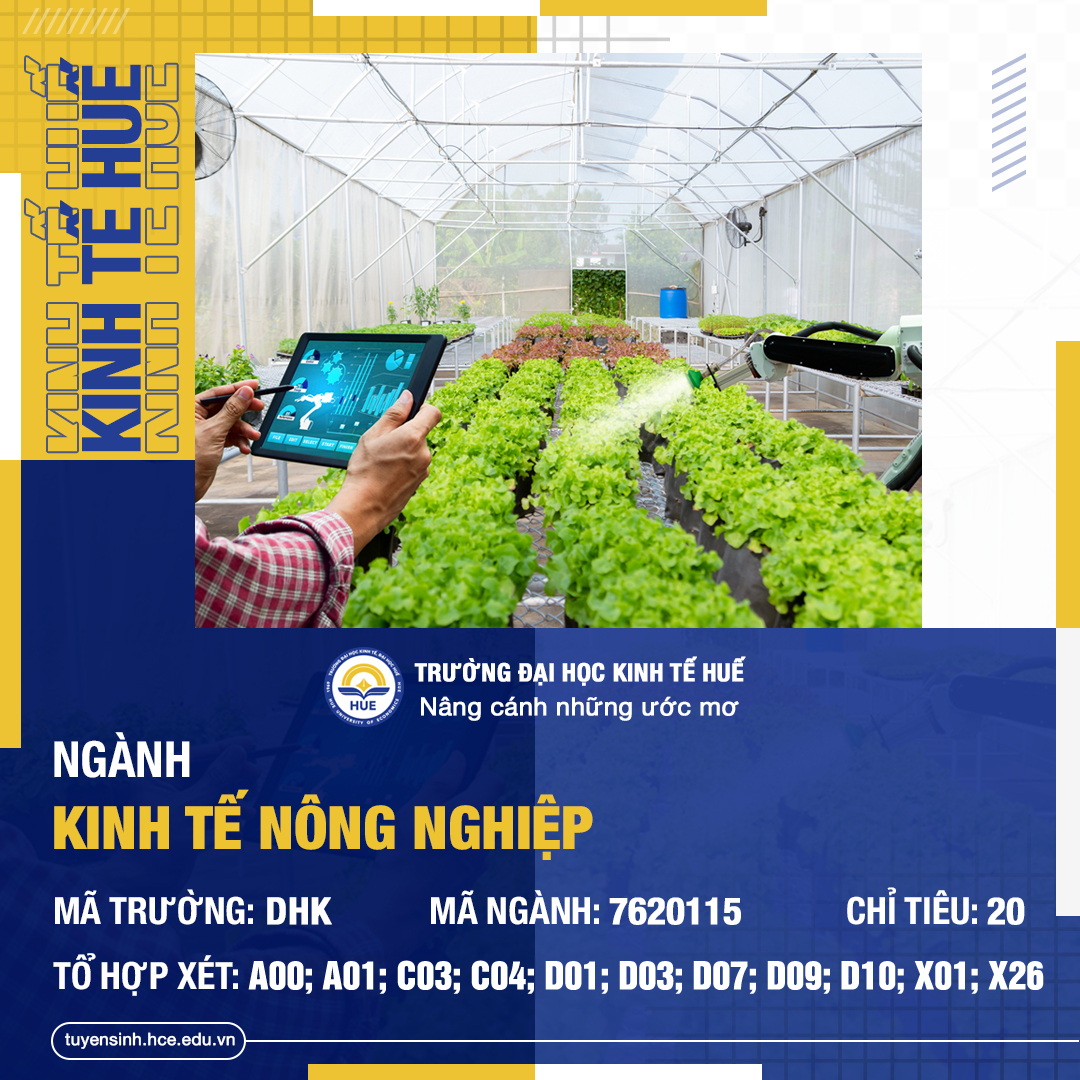 Ngành Kinh tế Nông nghiệp nghiên cứu việc áp dụng các lý thuyết kinh tế vào sản xuất, phân phối và tiêu thụ sản phẩm nông nghiệp. Sinh viên sẽ học cách quản lý nguồn lực, tối ưu hóa lợi nhuận, và phát triển bền vững trong lĩnh vực nông nghiệp, từ trang trại đến thị trường, đồng thời xem xét các chính sách và tác động môi trường